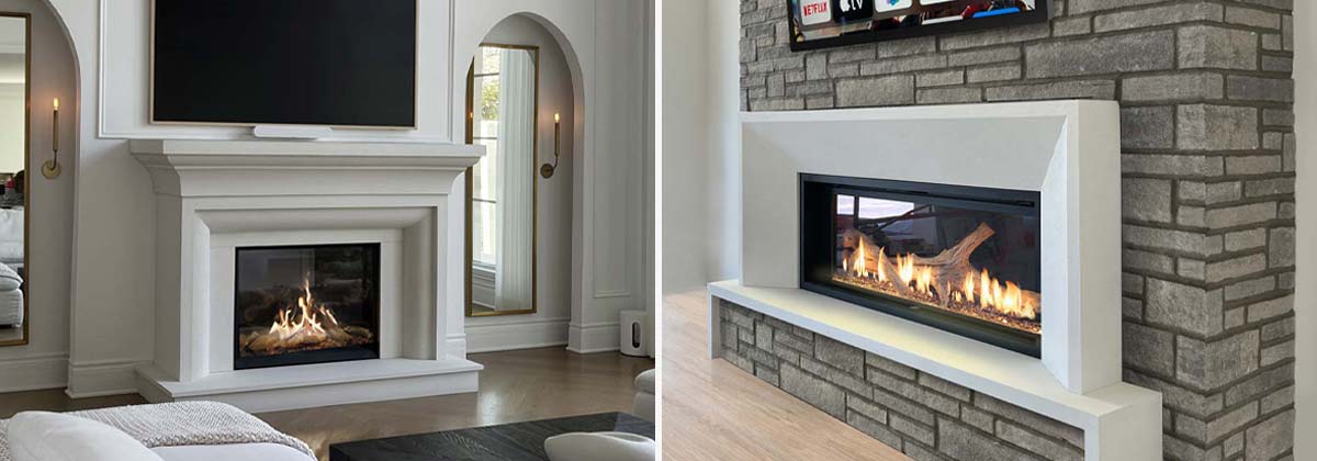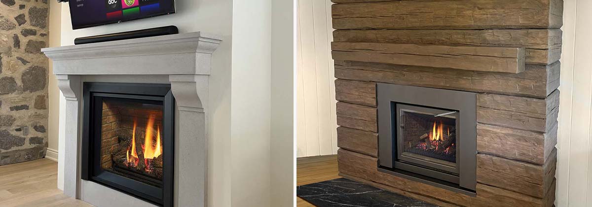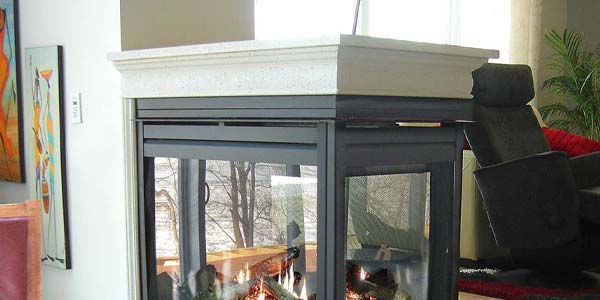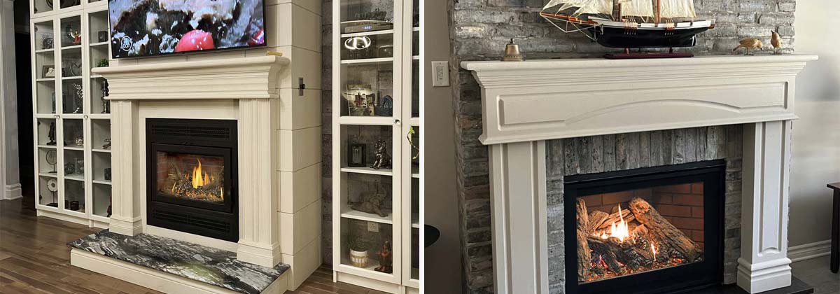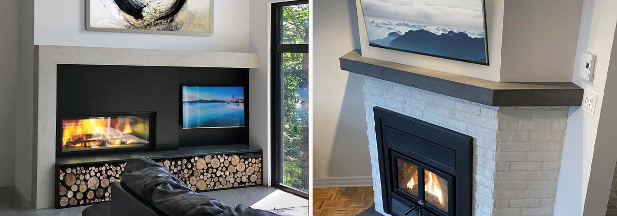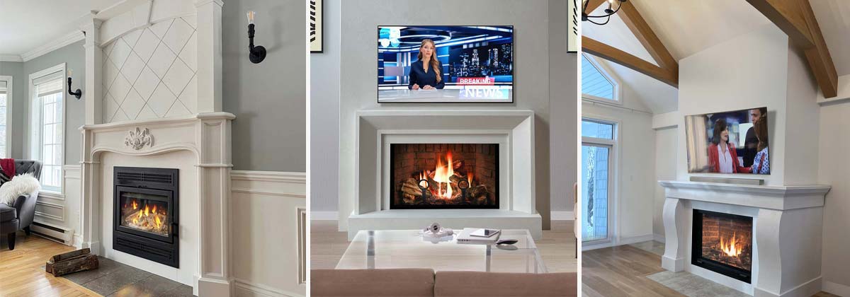 L'installation d'un manteau de foyer, composé de matières combustibles (tels que le bois, gypse, etc.) requiert certaines normes en matière de sécurité-incendie quant aux distances minimales à respecter entre les matériaux autour d'un foyer pré-fabriqué ou de l'âtre d'un foyer de maçonnerie.